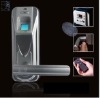 fingerprint lock Exquisite. Smart and Intelligent This is a new fingerprint door lock designed and developed model. The lock has many "First" comparing the other fingerprint door lock in the market* The First fingerprint lock with remote control function, no need to open the door yourself when you have a friend visiting. Like how you turn on your TV set, slightly press a remote controller, the door will be under your control.* The first fingerprint door lock with intelligent navigationProduct Features 1.Durable Fingerprint Reader Adopts optical fingerprint sensor, CMOS chip. 2. Fingerprint can't be duplicated. 3. Remote control utility 4. Zinc alloy die-casting 5. Simple user interface (Easy operation menu) 6. Compatible with cylinder door 7. Embedded store capacity up to 99 users 8. Working temperature 30 85 9. 4 (AA) alkaline battery, external power supply port (emergency) 10. Fingerprint sensor resolution 500DPI Specifications: Sensor : Optical Resolution: 500DPI Scanning time :<1 Sec FRR(False Rejection Rate): 0.001% FAR(False Acceptance Rate) : 0.00001% Fingerprint capacity : 99 Static consumption : 12uA System power supply :4 (AA) alkaline battery, external power supply port (emergency) Working temperature : -30 85 Working humidity: <90% RH Identification mode: Fingerprint